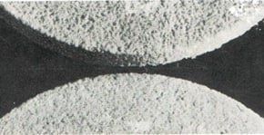 Realizada a análise microscópica de até 1200X da microestrutura do rebolo, usada para confirmar a granulometria do rebolo e para verificar o processo de vitrificação/cura.